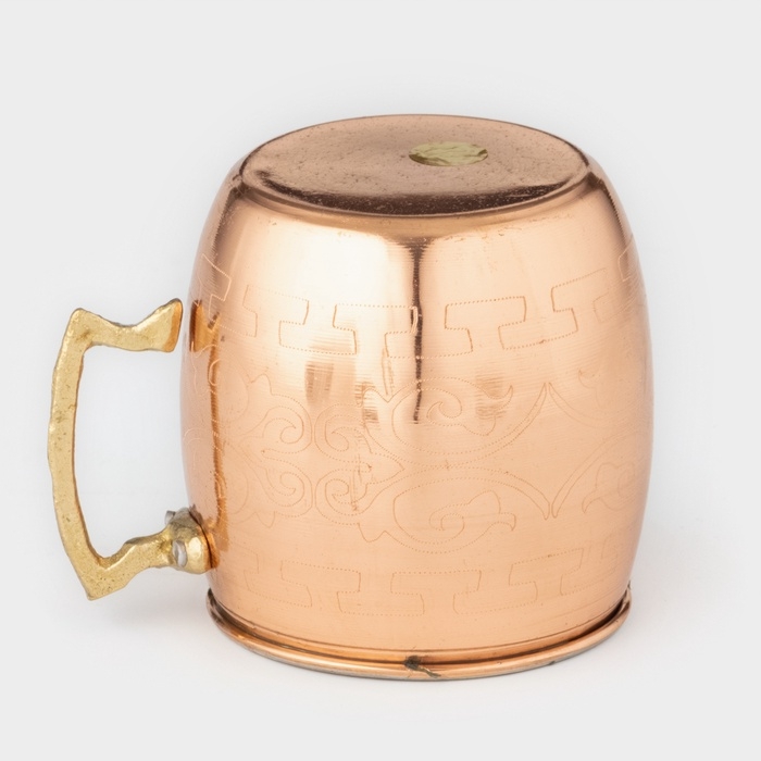 Кружка медная, 450 мл, d= 8 см, h=8,5 см, латунная ручка, с узором, 1 сорт