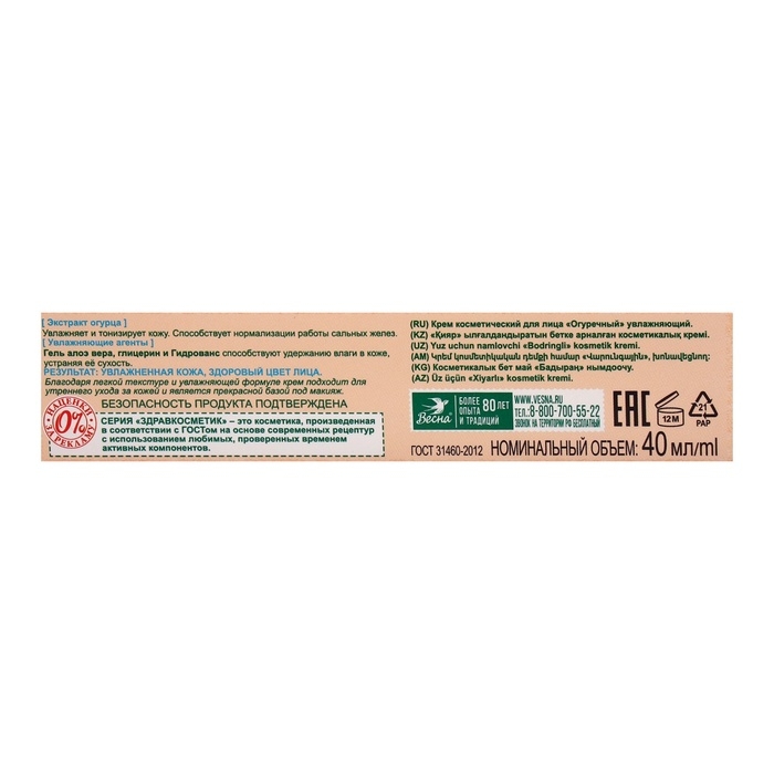 Регулярное использование крема для лица «Огуречный» от бренда «Весна» позволит вашей коже выглядеть здоровой, увлажнённой и ухоженной.