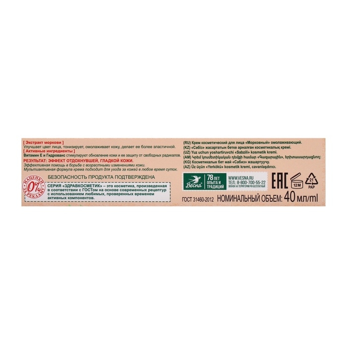 Крем для лица Весна "Морковный" омолаживающий, 2 упаковки по 40 мл