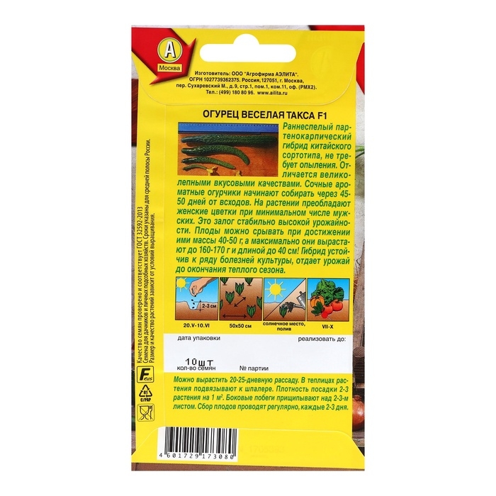 Семена Огурец "Веселая такса" F1, ц/п, 10 шт