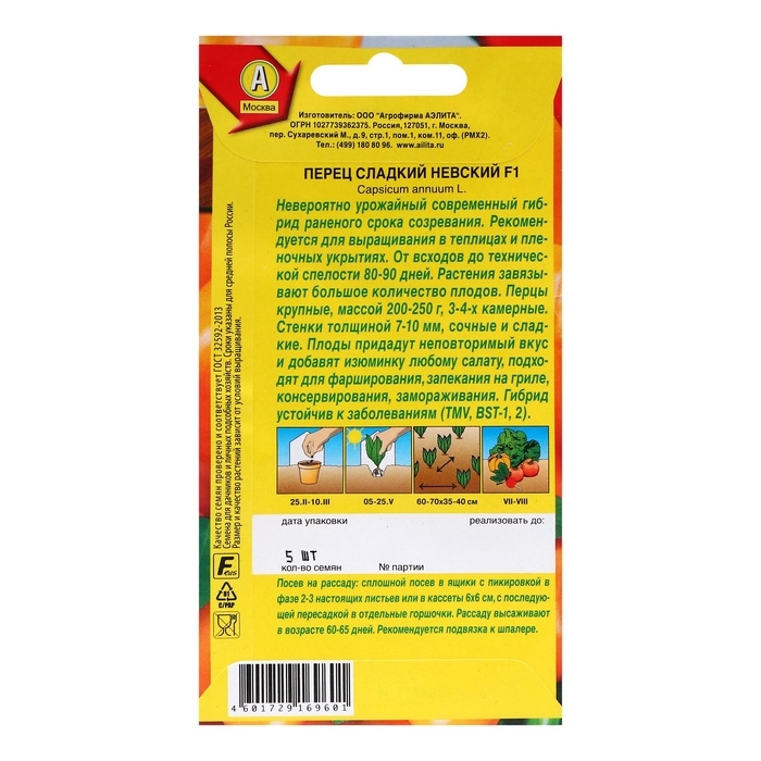 Семена Перец сладкий "Невский" F1, ц/п, 5 шт