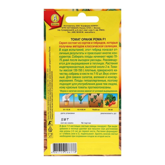 Семена Томат "Оранж Рома" F1," ц/п, 5 шт