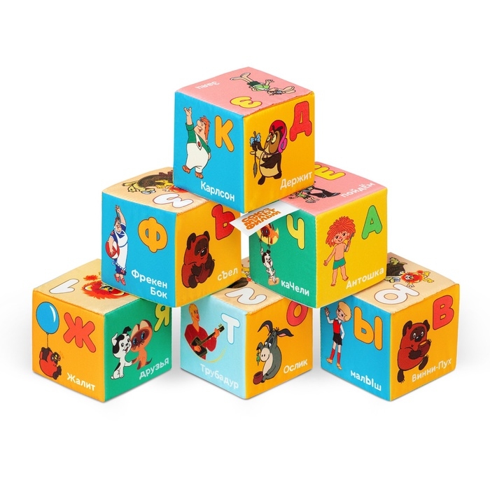 Набор развивающих мягких кубиков Мякиши «МультБукварик», Союзмультфильм, 8×8 см