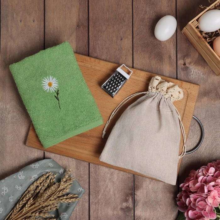 Набор подарочный "Сhamomile" полотенце 30х60см, тёрка 7,7*3,7см
