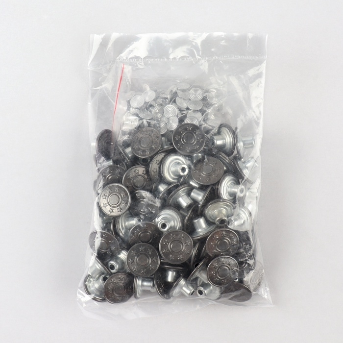 Набор джинсовых пуговиц, 17 мм, 100 шт, цвет чёрный/серебряный