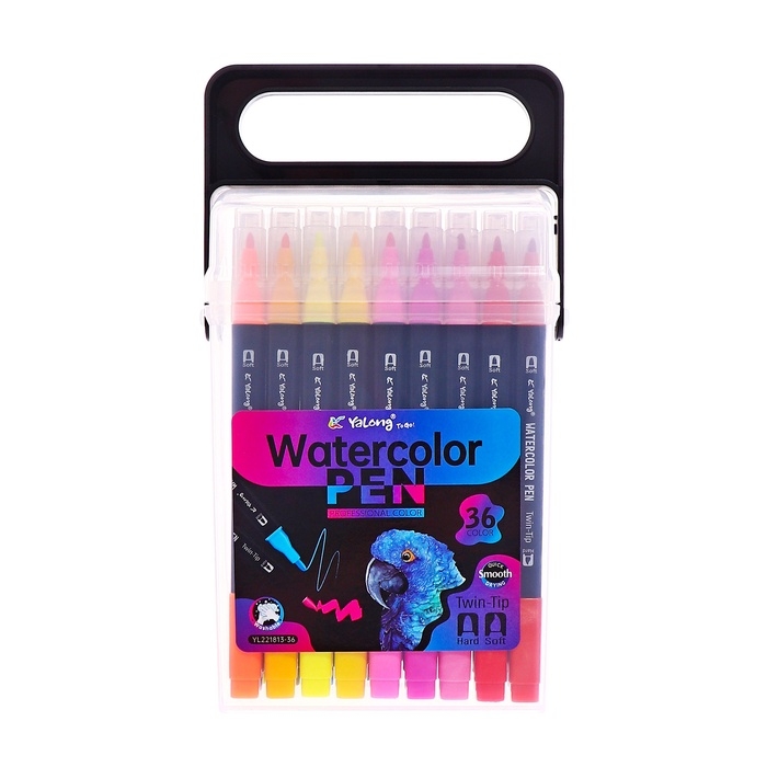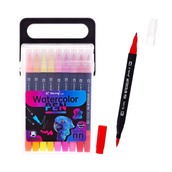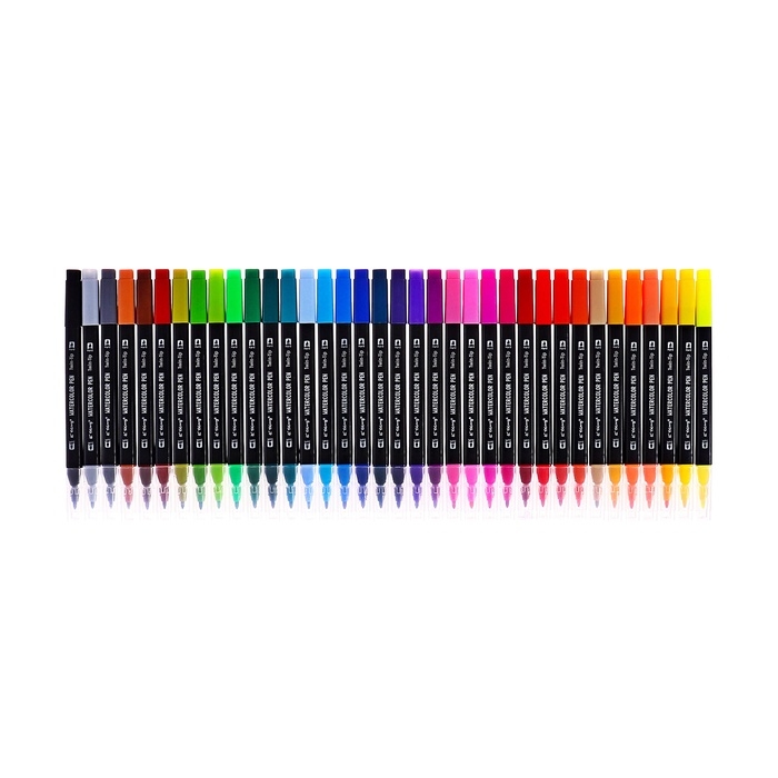 Набор маркеров 36 цветов, двусторонние, черный корпус в пластиковом пенале
