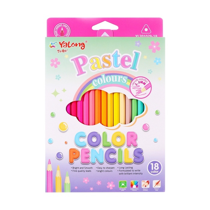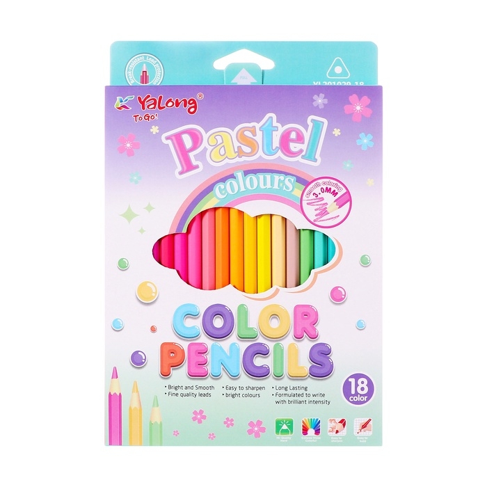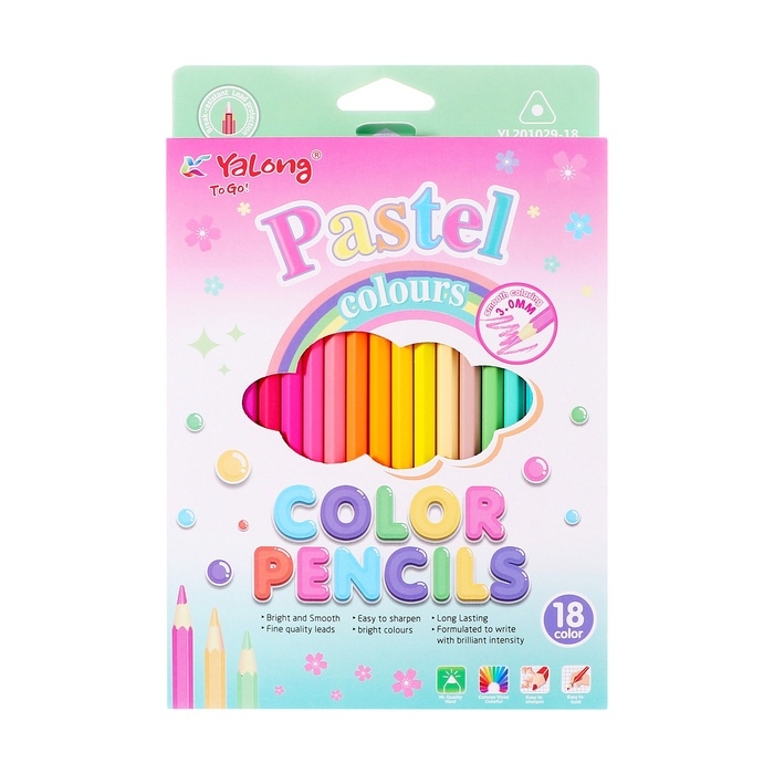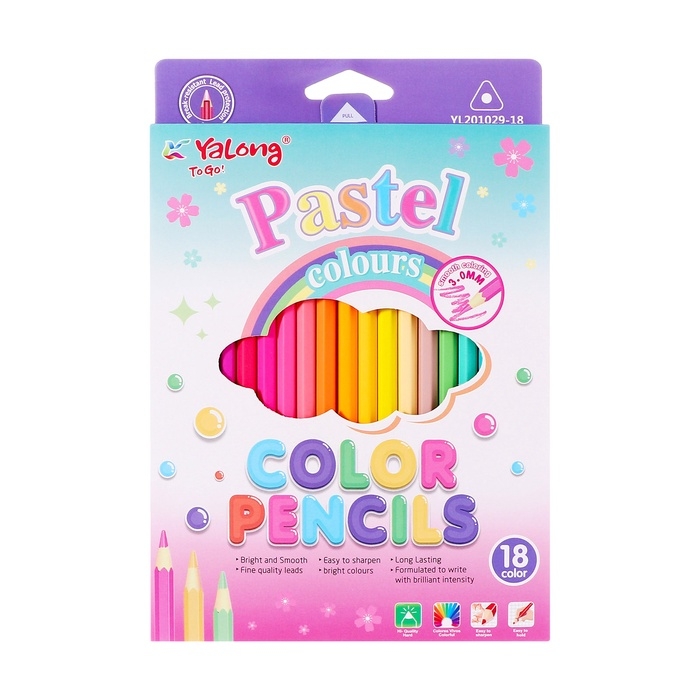 Карандаши 18 цветов в картонной коробке, треугольные, деревянные, Пастель МИКС