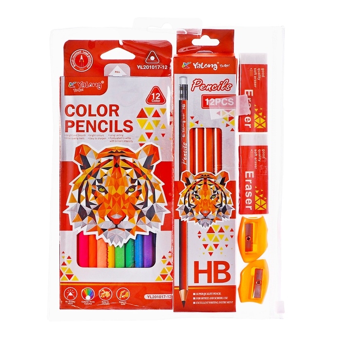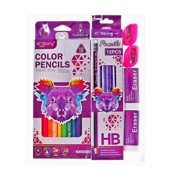 Набор карандашей ч/г 12 шт, цветные 12 шт, 2 точилки, 2 ластика, в папке на молнии МИКС