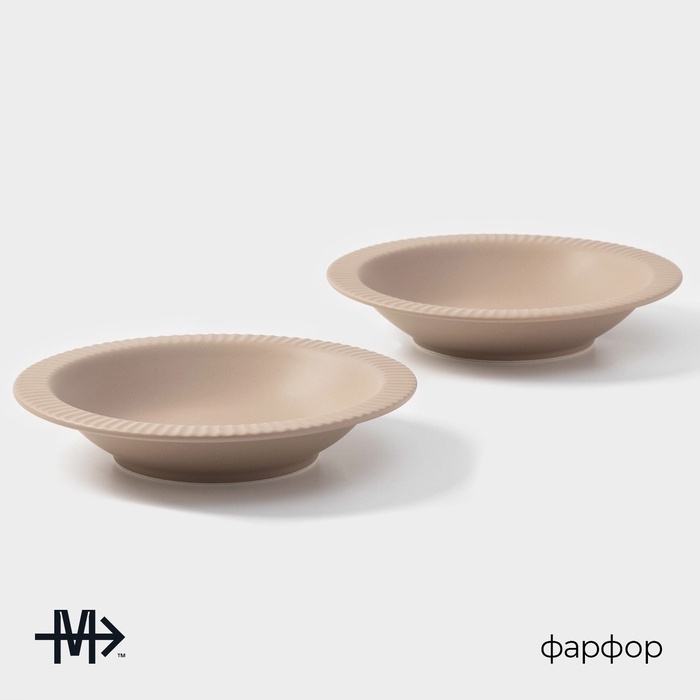 Тарелки Magistro Jarwah Lausanne, 550 мл, 21,3×4 см, глубокие, набор 2 шт, фарфор, бежевые