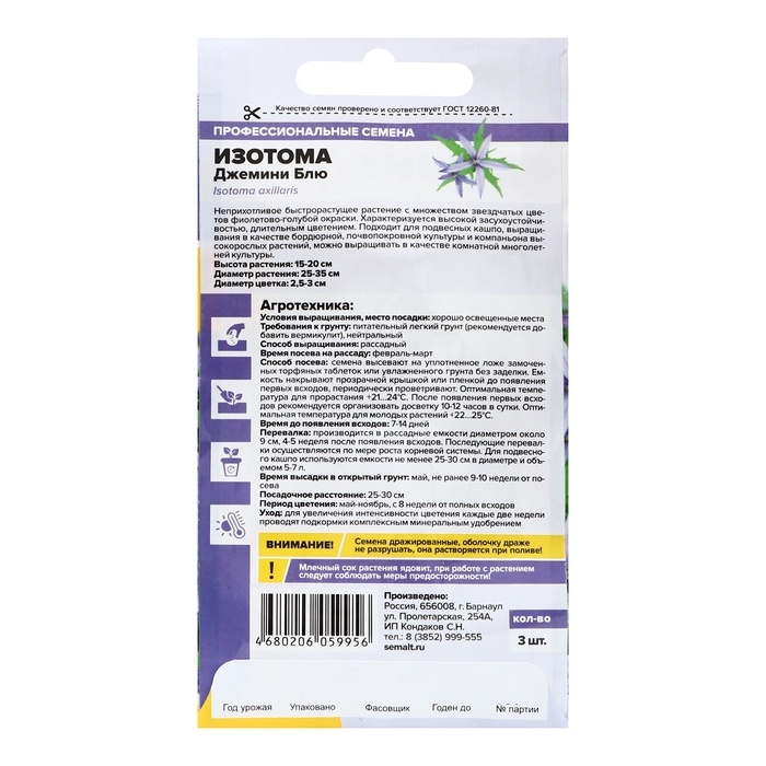 Семена цветов Изотома Джемини Блю, ц/п, 3 шт.