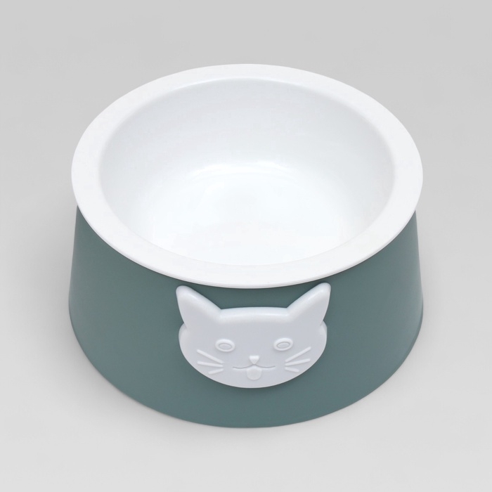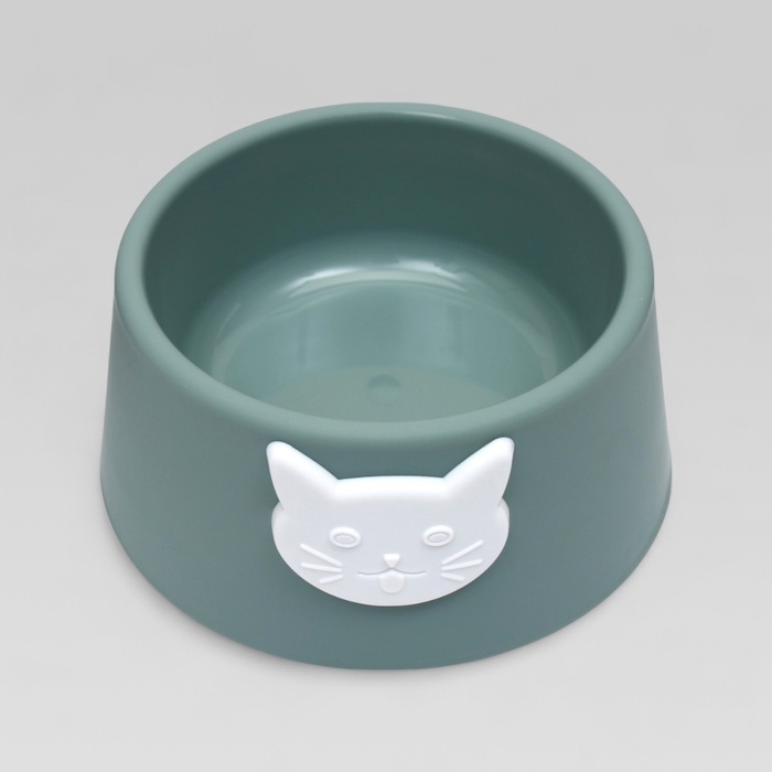 Миска для кошек 2 в 1 "Киса" пластиковая, 14 х 8 см, зелёная