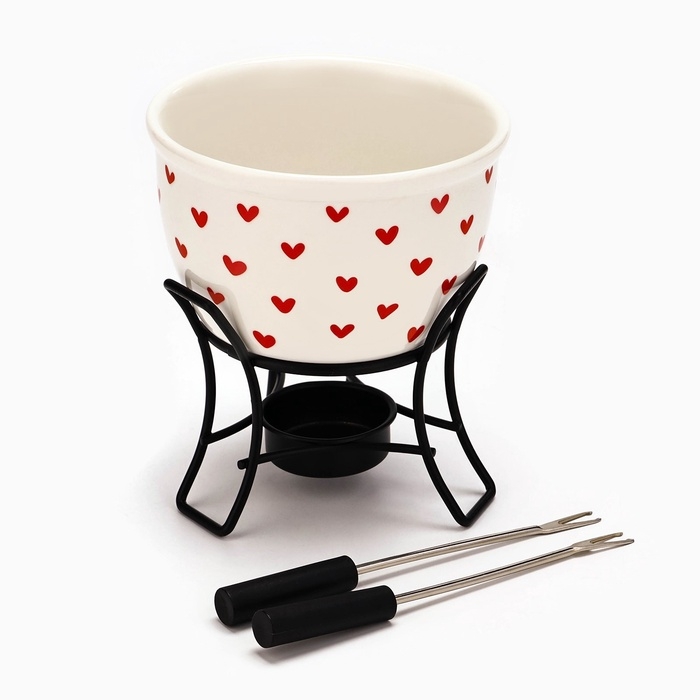 Фондю керамическое Дорого внимание «Сердечки», 2 шпажки