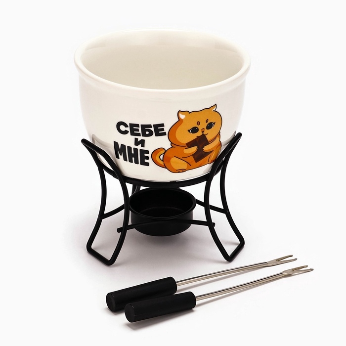 Фондю керамическое Дорого внимание «Себе и мне», 2 шпажки