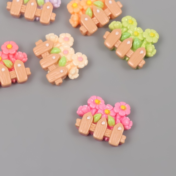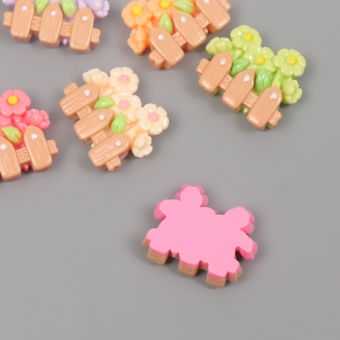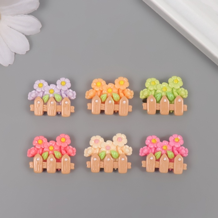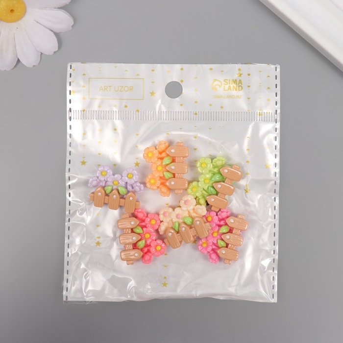 Декор для творчества пластик "Ромашки за заборчиком" набор 6 шт 2,5х2х1 см