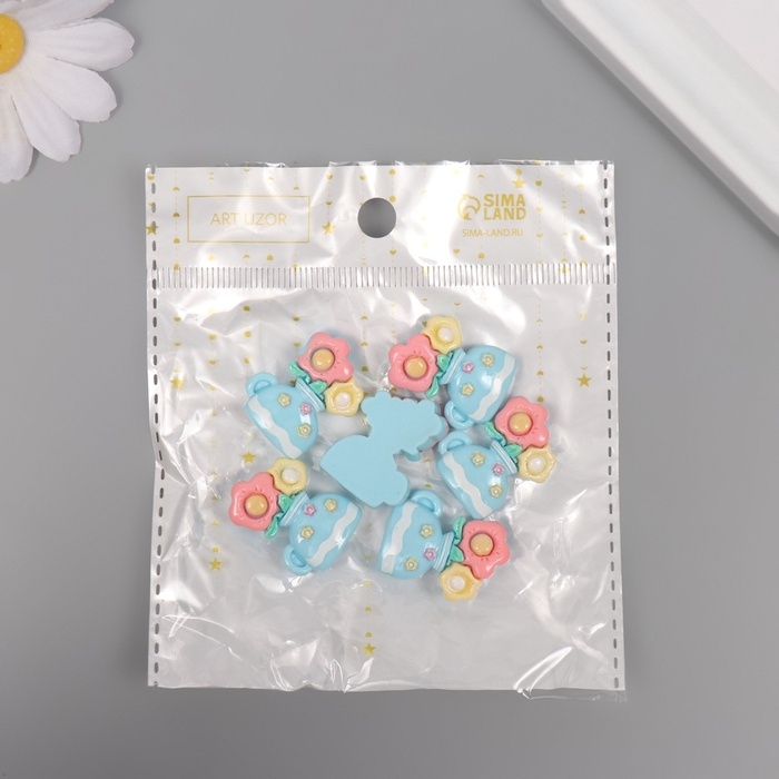 Декор для творчества пластик "Ваза с цветами" набор 6 ш 2,5х2х0,8 см