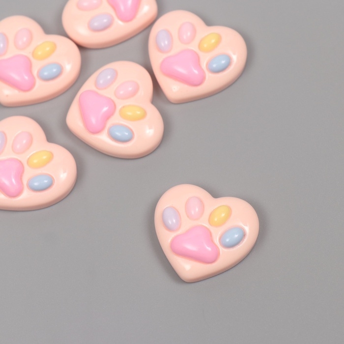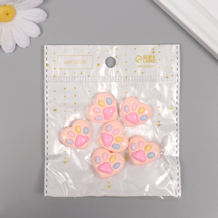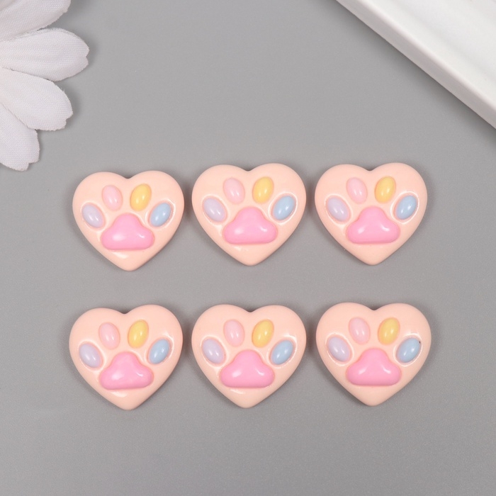 Декор для творчества пластик "Лапка в сердечке" набор 6 ш 2х2,5х0,8 см