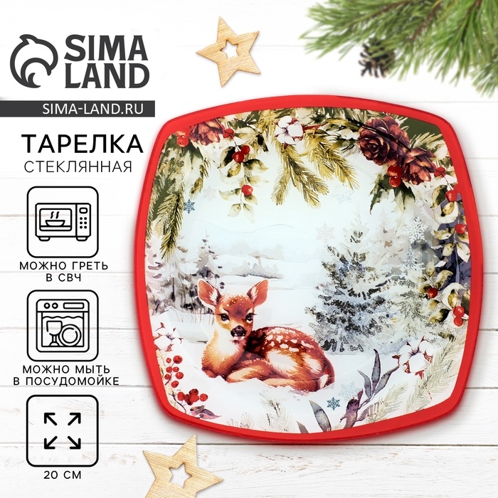 Тарелка плоская новогодняя Дорого внимание «Лесная сказка», 20 см, стекло