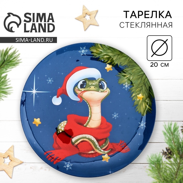 Тарелка стеклянная новогодняя Дорого внимание «Змейка», 20 см