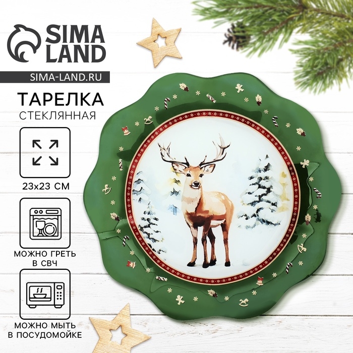 Тарелка плоская стеклянная Дорого внимание «Лесная сказка», 23 см