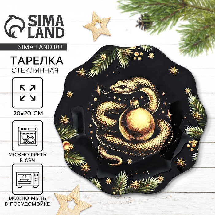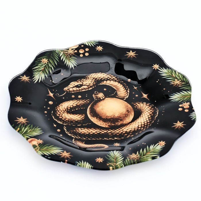 Тарелка стеклянная новогодняя Дорого внимание «Золотая змейка», 20 см
