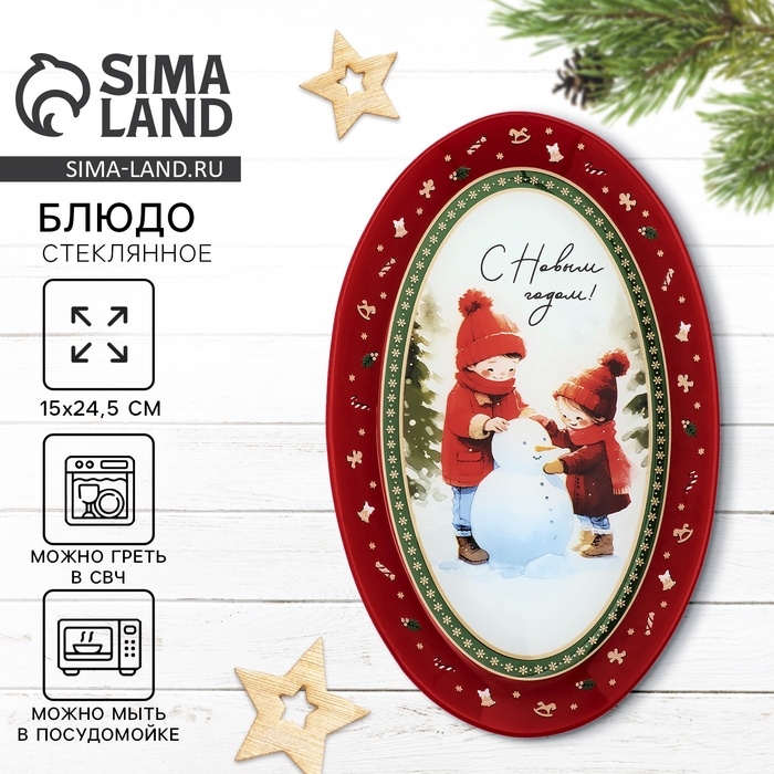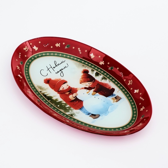 Блюдо овальное новогоднее Дорого внимание «С Новым годом!», 24,5 × 15 × 2 см, стекло