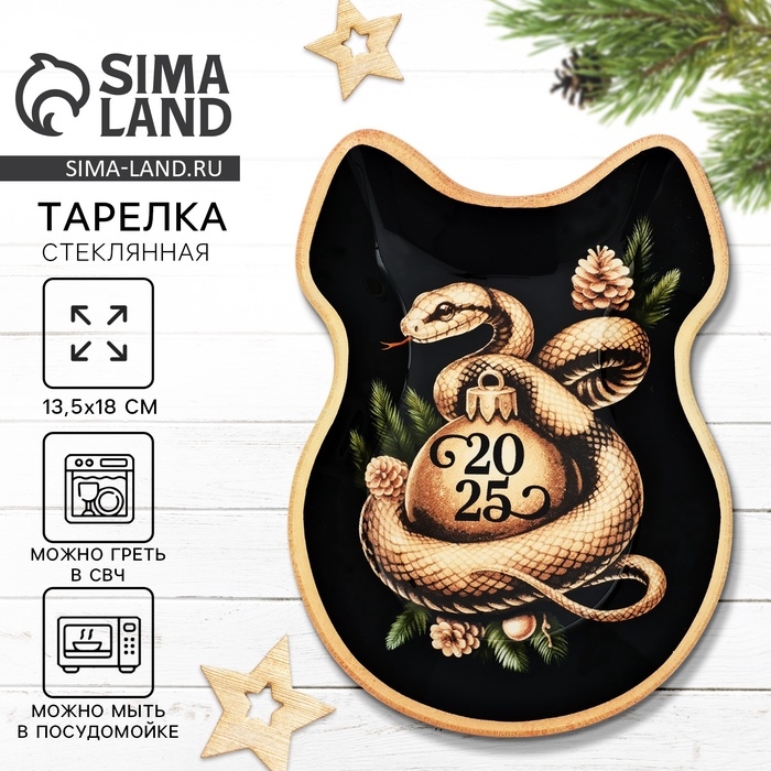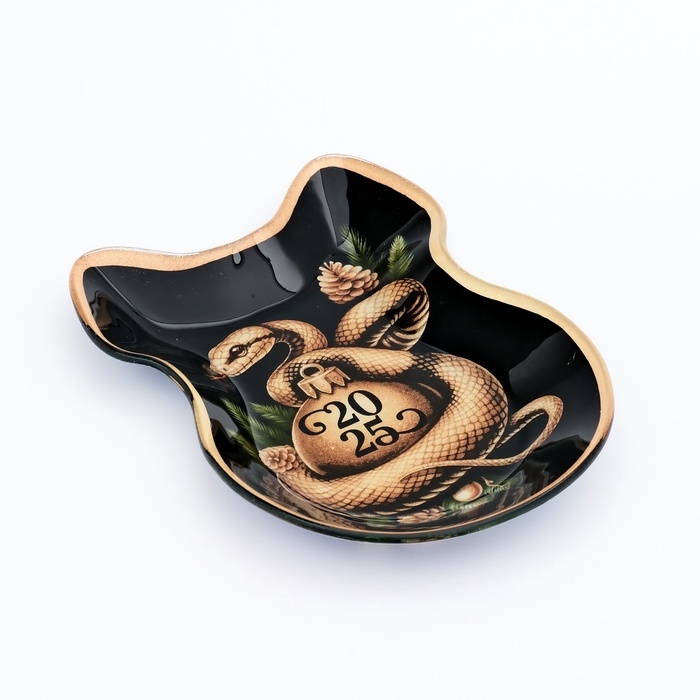 Тарелка в форме банта новогодняя Дорого внимание «Золотая змейка», 13,5 х 18 см, стекло