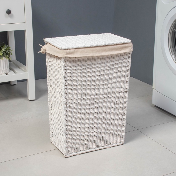 Корзина для белья LaDо́m «Классика», прямоугольная, 45×27×64 см, белая