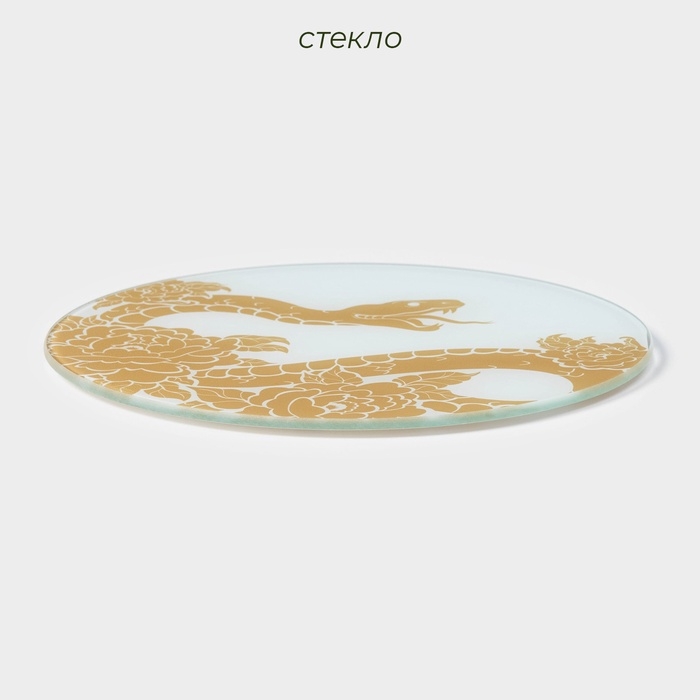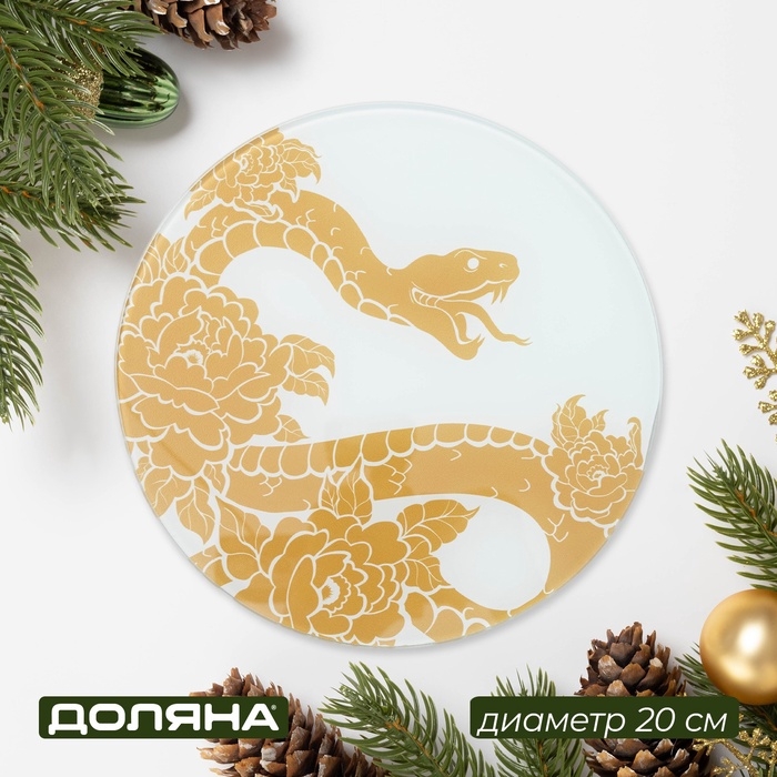 Доска разделочная новогодняя Доляна «Змея», d=20 см, стекло, с рисунком, белая