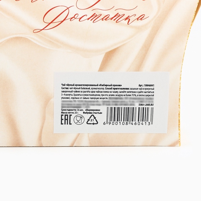 Чай чёрный новогодний «Счастья», со вкусом имбирного пряника, 20 г.