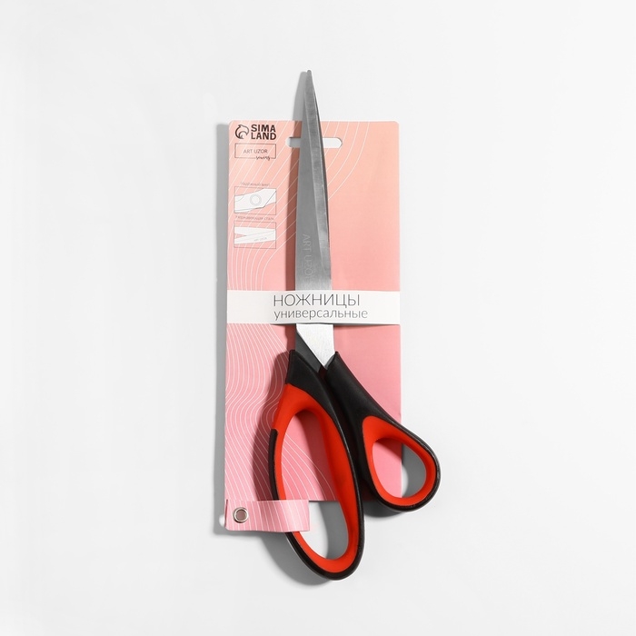 Универсальные ножницы подходят для работы с бумагой, картоном, полиэтиленом. Ножницы удобно лежат в руке, а их острые лезвия обеспечивают идеально ровный срез.