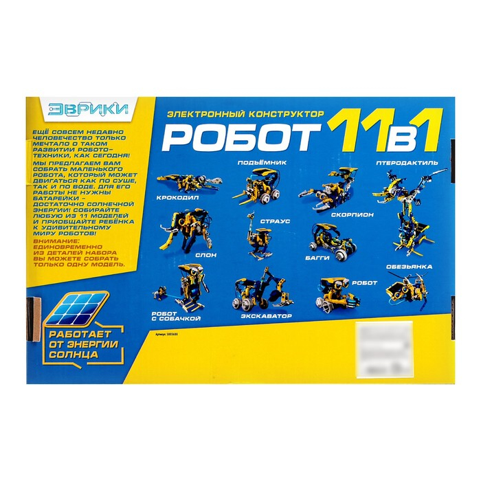 Электронный конструктор «Робот 11 в 1», работает от солнечной батареи