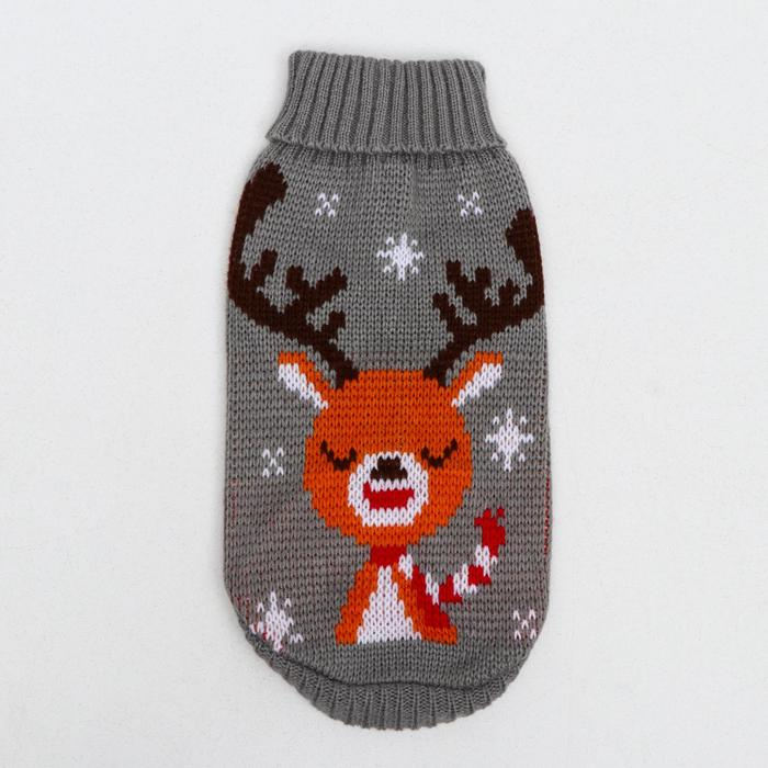Свитер "Олень на сером", XS (ДС 17, ОШ 17, ОГ 23-37 см)