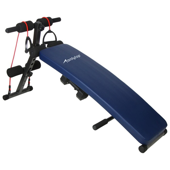 Скамья для пресса ONLYTOP, 120 см, изогнутая, с гантелями 1,5 кг и эспандерами