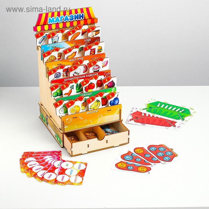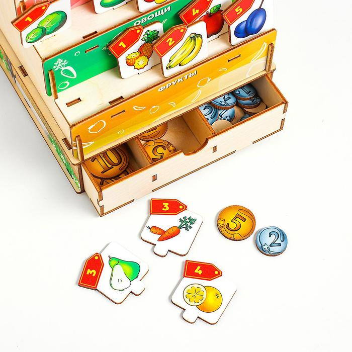 Игровой набор «Магазин» научит ребёнка считать деньги и делать покупки, а также разовьёт мелкую моторику, логику и внимание. Набор представляет из себя витрину, на которой стоит множество товаров, их можно купить или продать за монетки.