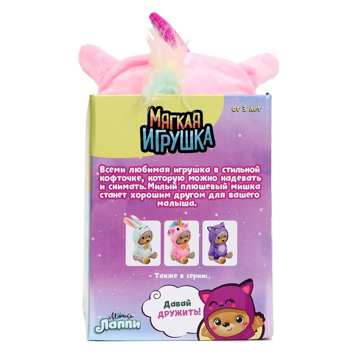 Мягкая игрушка «Медвежонок Лаппи - единорожка», 22 см