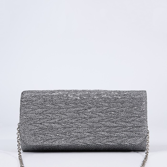 Сумка-клатч на магните, длинная цепь, цвет светло-серый