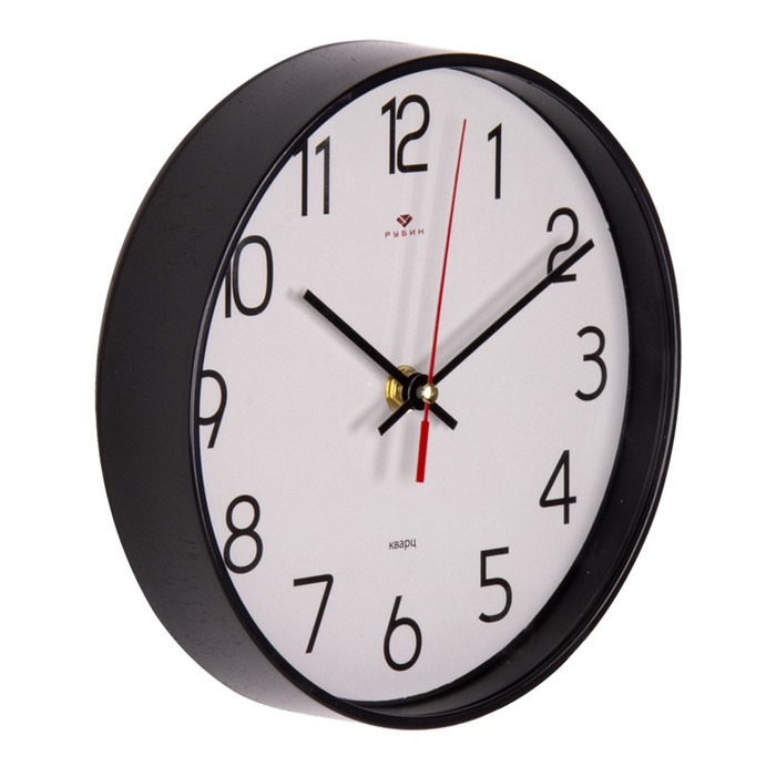 Часы настенные, интерьерные, бесшумные, d-19.5 см, черные