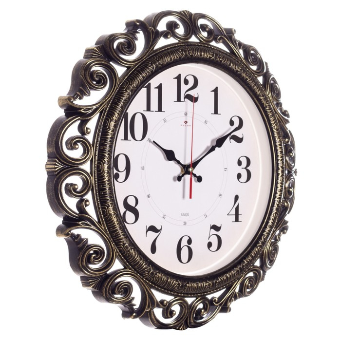Диаметр корпуса составляет 40,5 см, что позволяет легко читать время со значительного расстояния. Их корпус украшен ажурным узором, который придает часам оригинальный и изысканный вид. Однако, самым важным преимуществом этих интерьерных часов является бесшумный механизм, который обеспечивает равномерный ход стрелок без каких-либо шумов. Это отличное решение для тех, кто ценит тишину в доме и хочет, чтобы звуковые эффекты часов не мешали покою. Кроме того, плавный ход стрелок делает чтение времени еще более легким и удобным.
