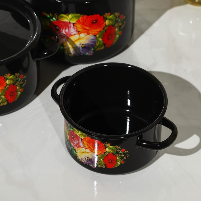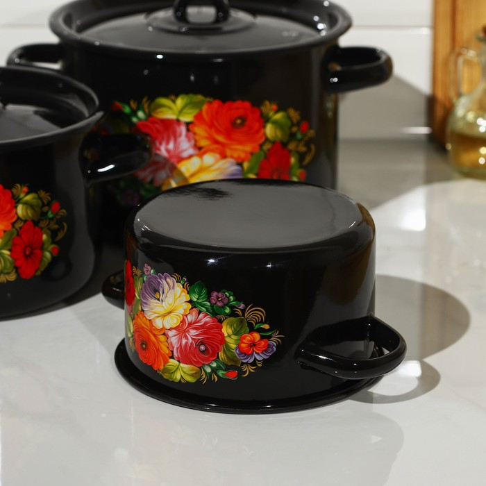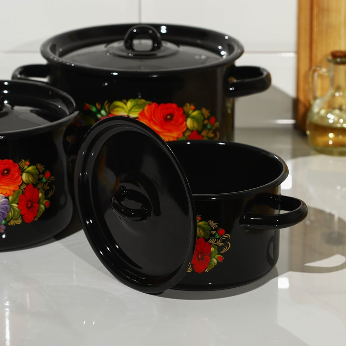 Набор кастрюль «Жостово», 3 предмета: 1,5 л, 2,9 л, 4,5 л, эмалированные крышки, индукция
