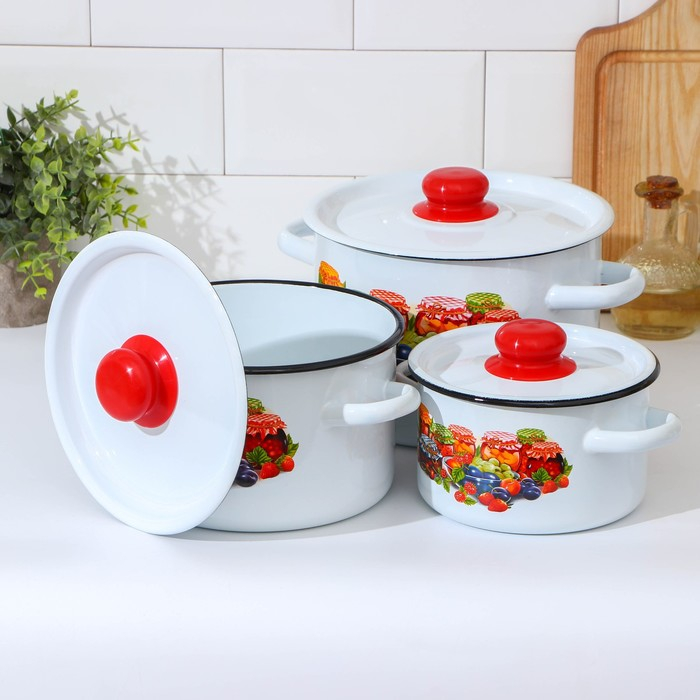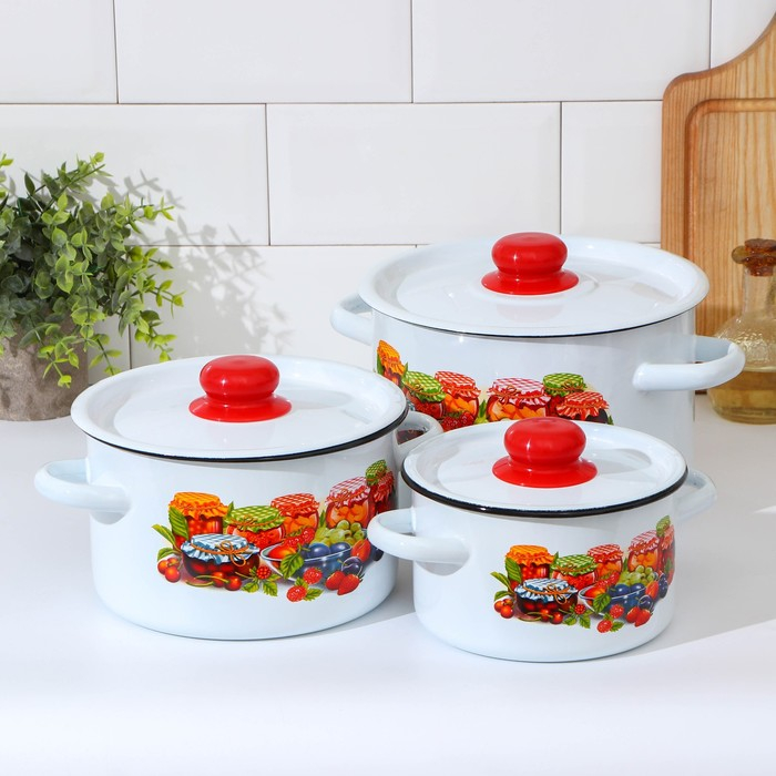 Набор эмалированных кастрюль «Варенье», 3 предмета: 1,5 л, 2,9 л,4,5 л, цвет белый