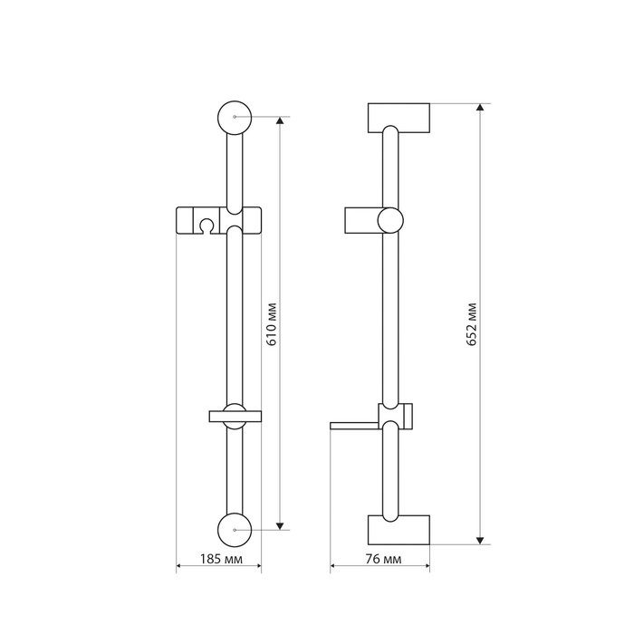 Это вертикальная штанга, на которой установлен кронштейн для ручного душа. Штанга стационарно крепится к стене над ванной при помощи специальных кронштейнов. Модель оснащена удобной пластиковой мыльницей.