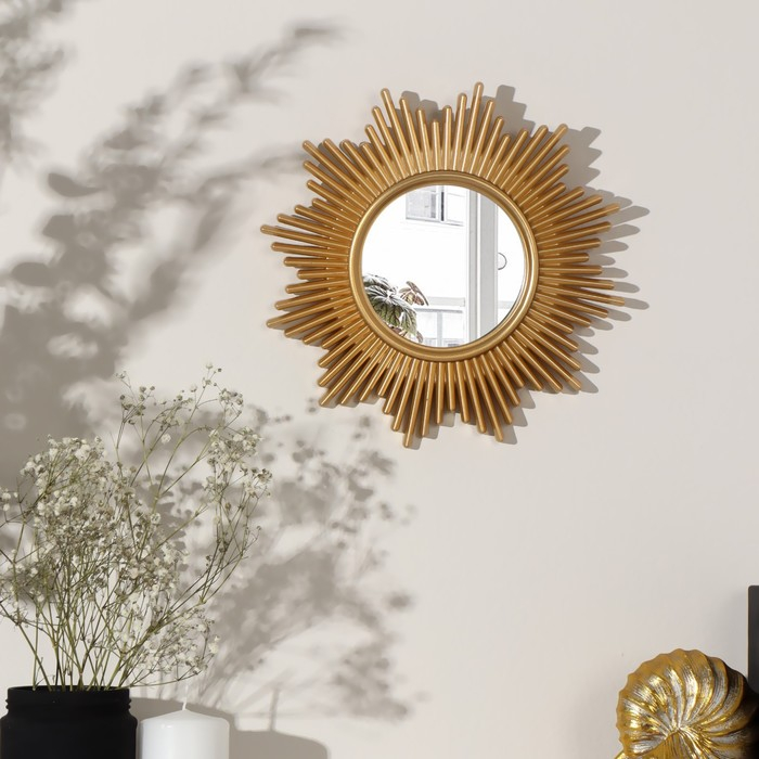 Зеркало настенное «Солнце», d зеркальной поверхности 10,5 см, цвет «состаренное золото»