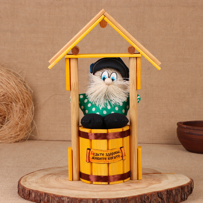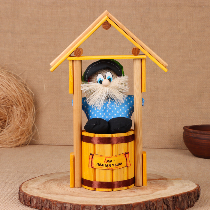 Оберег - домовой "Домовой на бочке, в домике", h = 30 см, микс