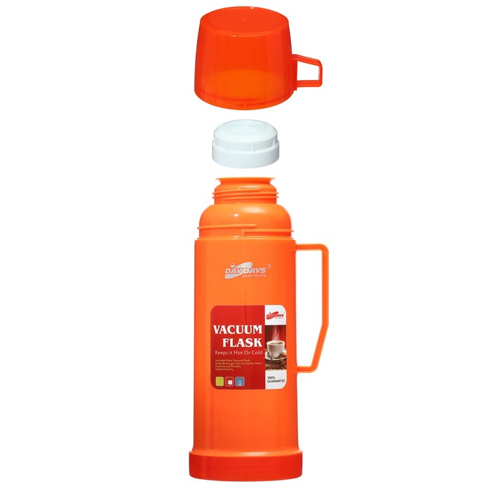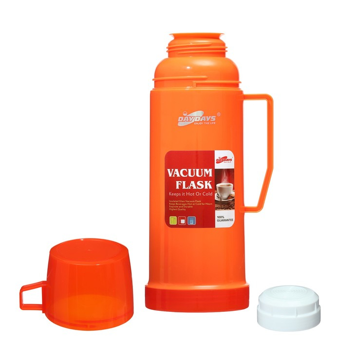 Термос 450 мл, со стеклянной колбой, с кружкой, 12 х 25 см, оранжевый