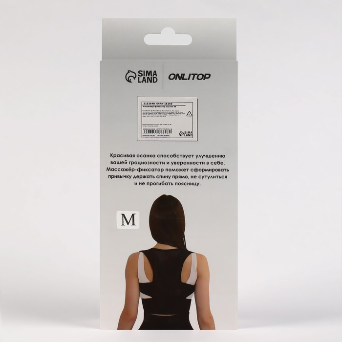 Массажёр - фиксатор для осанки, на липучках, размер S, картонная коробка, цвет чёрный