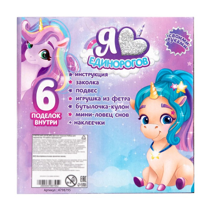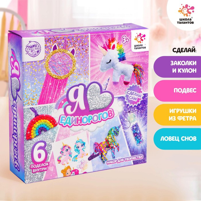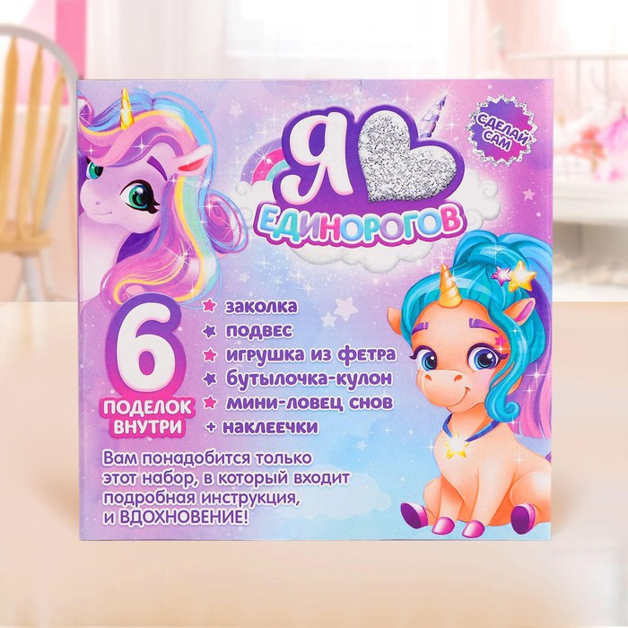Все наборы из серии «Я люблю» представляют собой мегакомплекты с 6 поделками внутри. Состав набора разработан исходя из предпочтений ребёнка. В серии есть 4 темы: единороги, ламочки, русалки и феечки.