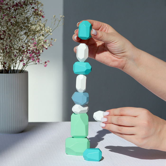 Игра-баланс задействует логику и разовьёт мышление малыша. Камни благотворно влияют на тренировку моторики детских пальчиков и ловкости рук.