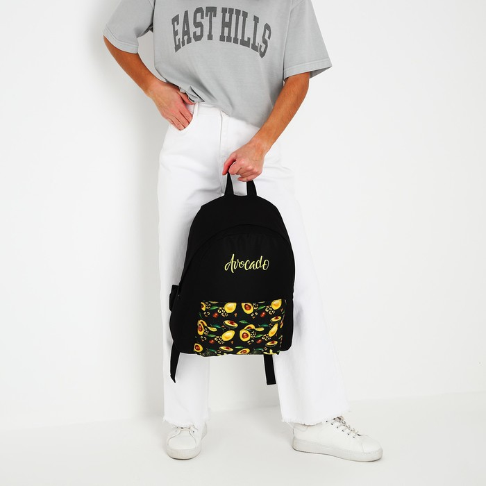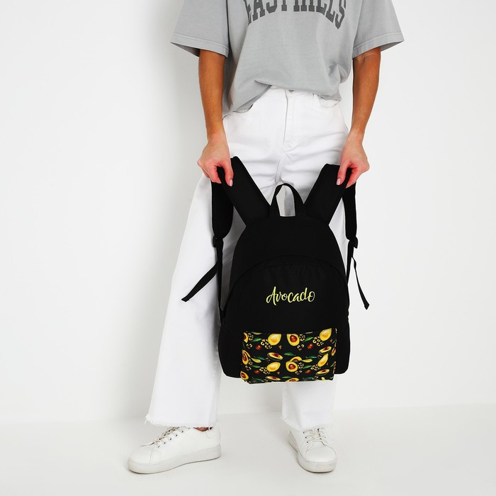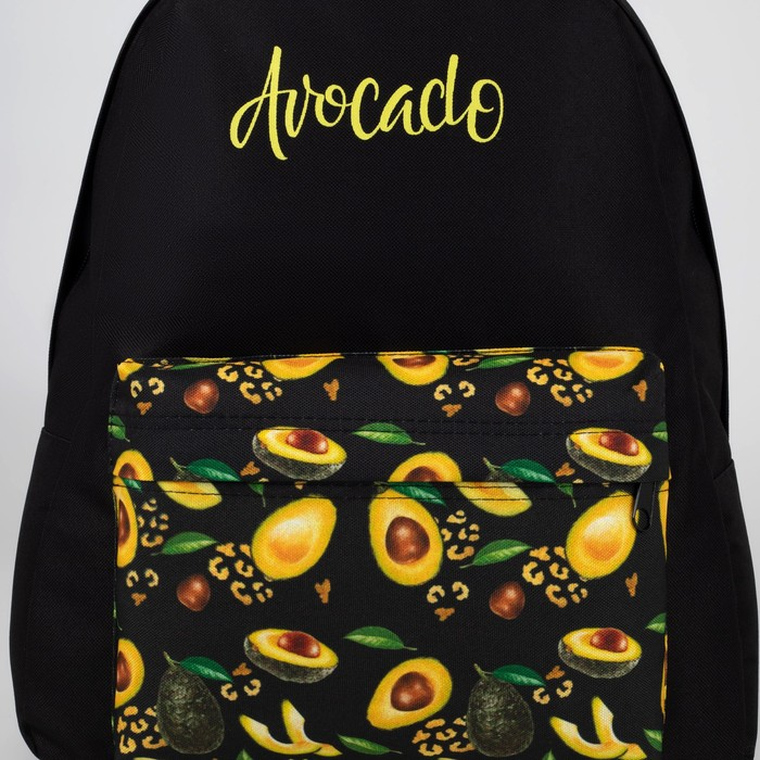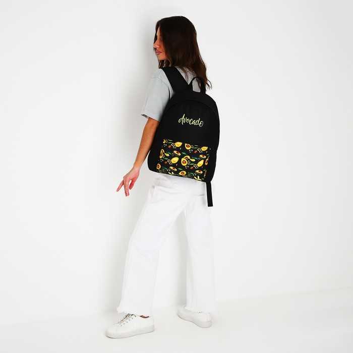 Рюкзак школьный молодёжный «Авокадо», 33х13х37 см, отдел на молнии, н/карман, чёрный