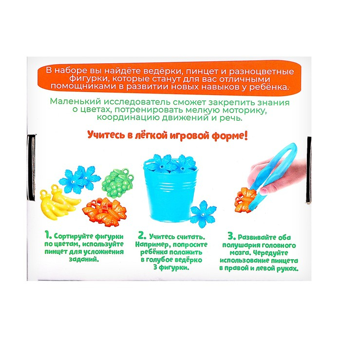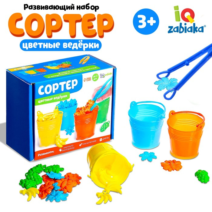Набор-сортер «Цветные ведёрки» рекомендован детям старше 3 лет.