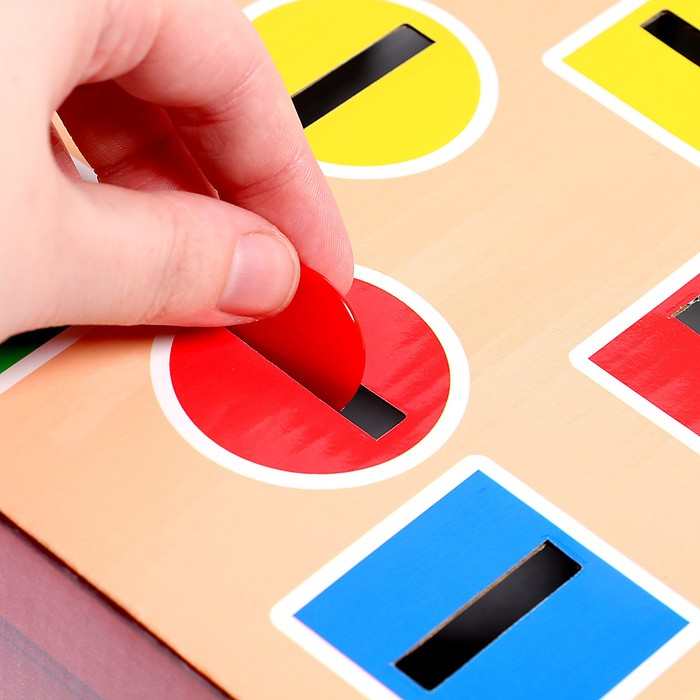 - Попросите кроху опустить фигуру нужного цвета в подходящее отверстие.